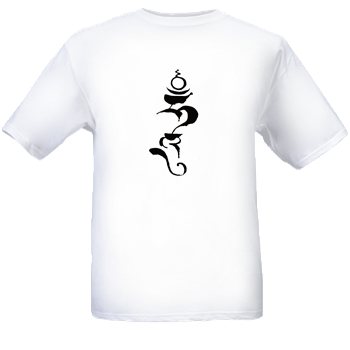They carry the seed syllable Hung – symbol of Padmasambhava and Yeshé Tsogyel. On Friday night Ngak’chang Rinpoche explained how the tulip bulb brushes are manipulated in order to create both very fine and very thick lines in a single brush stroke, as you can see in the sweeping curves of the Hung on the t-shirt:
