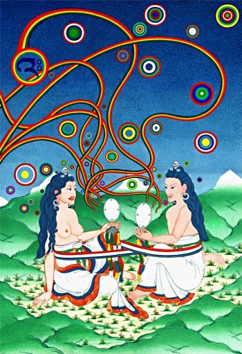 Ngak’chang Rinpoche and Khandro Déchen explore vajra romance as the living application and dynamism of the ‘Nyi-da Mélong’ – a Dzogchen tantra from the cycle of visionary revelations, realised by the enigmatic Nyingma treasure discoverer Khyungchen Aro Lingma (1886-1923). The Nyi-da Mélong puts to rest the myth that celibacy holds demonstrable spiritual advantages over a natural life. It opens the door to those who are inspired by the desire to integrate every aspect of human life with spiritual practice.