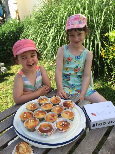 The girls were adamant in their will to stay at their table where they were overseeing the sale of our home made lemon muffins, decorated with little sugar beads. Some of the muffins must have disappeared in their own stomachs when no-one was looking, but otherwise the muffins were the best selling items by far. We also packed muffins to take away for people who could resist eating them straight away.