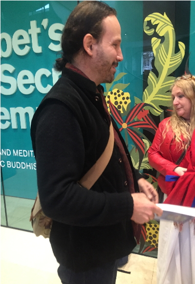 Ian Baker guided Ngak’chang Rinpoche and the sangha around the exhibition and together they discussed many different aspects of Vajrayana. Ngak’chang Rinpoche was able to provide extensive commentaries on many of the fascinating objects in the exhibition. We all shared in Ian Baker’s enthusiasm concerning many aspects of essential Vajrayana as purveyed by the Mahasiddha tradition in India. Ian Baker also told many stories about his relationship with Kyabjé Chatral Rinpoche and meetings with Kyabjé Künzang Dorje Rinpoche and Jomo Sam’phel Déchen.